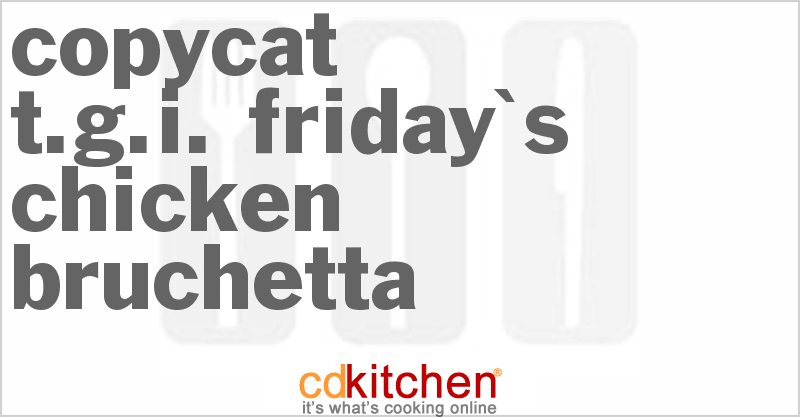 Recipe Location: https://www.cdkitchen.com/recipes/recs/529/TGIFridays_Chicken_Bruchetta44263.shtml Recipe ID: 1571 Don't forget to stop back at CDKitchen and write a review or upload a picture of this recipe!