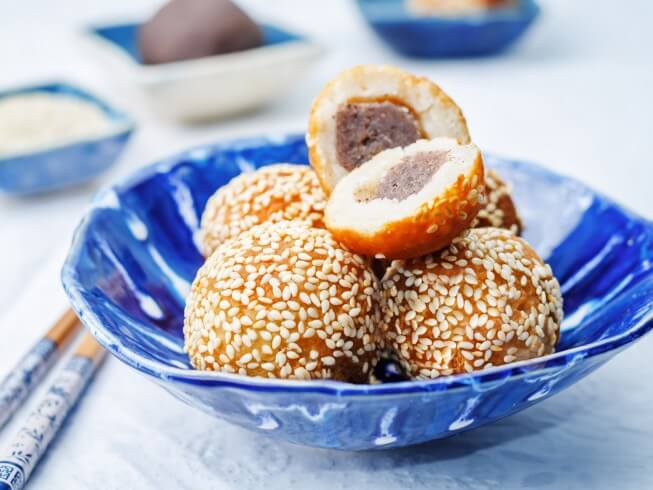 Jian Dui (Chinese Sesame Balls Filled with Red Bean Paste)