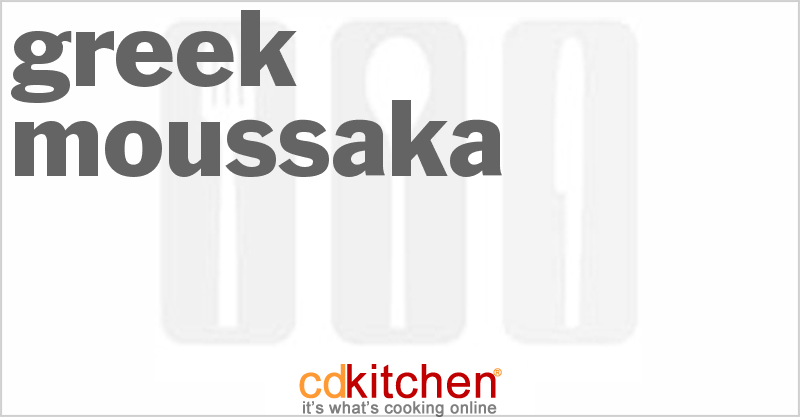 Recipe Location: https://www.cdkitchen.com/recipes/recs/472/Greek_Moussaka50284.shtml Recipe ID: 5556 Don't forget to stop back at CDKitchen and write a review or upload a picture of this recipe!