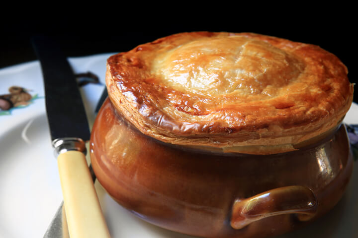 Spoon hot lobster stew into individual large ramekins or bowls. Place a baked pastry lid on each and sprinkle with chopped chives and parsley. Serve immediately.