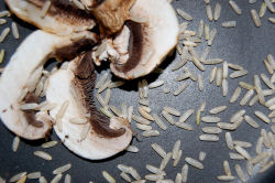 Made with fresh basil, long grain brown rice, vegetable stock, cream of mushroom soup, salt and pepper, fresh mushrooms