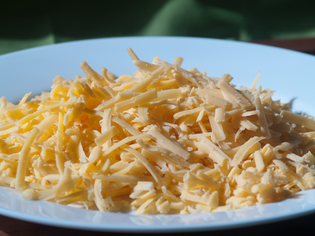 Her recipe for pimento cheese starts off with two kinds of cheddar, extra sharp and sharp, in equal amounts. Grate the cheese very finely because otherwise you'll have to put extra elbow grease in to mash it up later. I actually wish I had shredded mine just a little more finely. And please, do not use the pre-shredded stuff that comes in bags at the grocery store. That kind of cheese has all sorts of extra ingredients you don't need, including starch that is meant to keep the shreds from clumping. And in this case, you want them to mush together and become cohesive