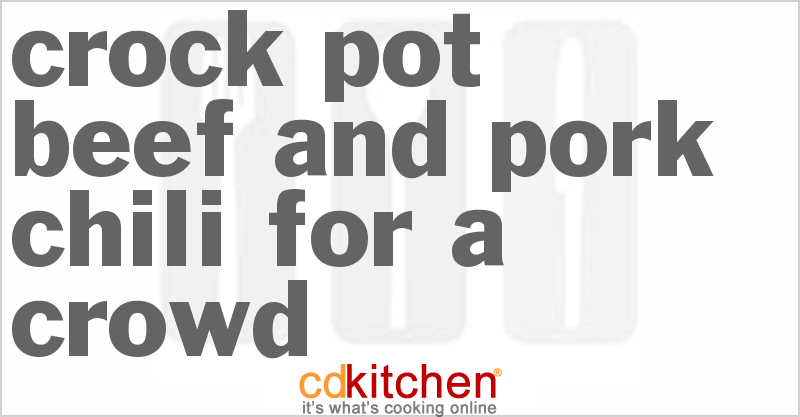Recipe Location: https://www.cdkitchen.com/recipes/recs/550/Chili_for_a_Crowd55847.shtml Recipe ID: 21564 Don't forget to stop back at CDKitchen and write a review or upload a picture of this recipe!
