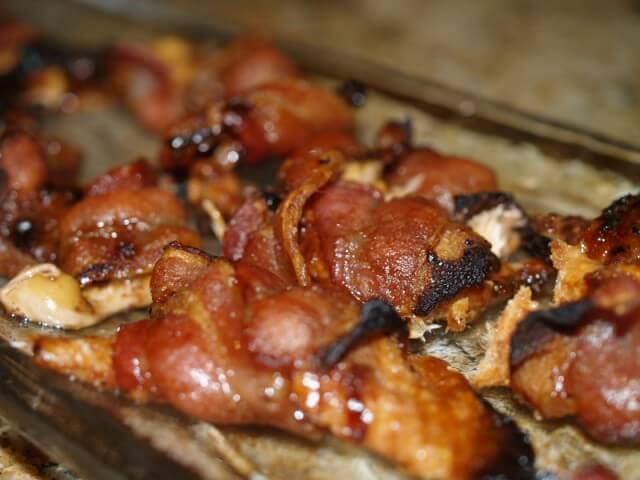 Ingredients: 8 slices bacon, cut in half 16 miniature candy bars (see note)