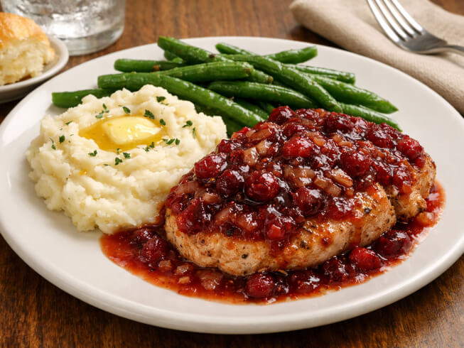 Turn chops. Pour cranberry mixture over chops in skillet. Bring to a boil. Lower heat, cover and simmer for 10 minutes, until chops are just done and still tender.