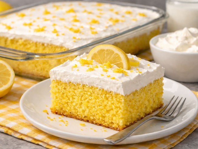 This cake is DELISH! If you like lemon, you will love it. AND it is very easy to make. I took it to a potluck on Labor Day. I came home with only a few pieces left in my pan! I will certianly keep this recipe in my files.