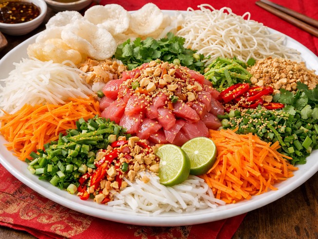 Also known as Lo Hei, this dish is traditionally served on the seventh day of Chinese New Year, which the Chinese celebrate as "everyone's birthday."