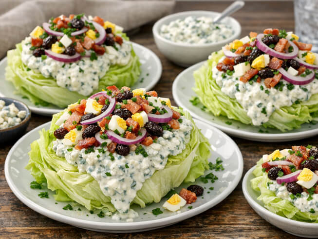 For Dressing: In a mixing bowl, gently combine the mayonnaise, sour cream, Worcestershire, vinegar, blue cheese and chives. Don't over mix. The dressing should have a chunky consistency.