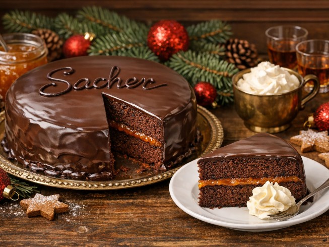 Let cool and turn out of mold. Split and spread heated and slightly diluted apricot jam over the lower half of the cake.