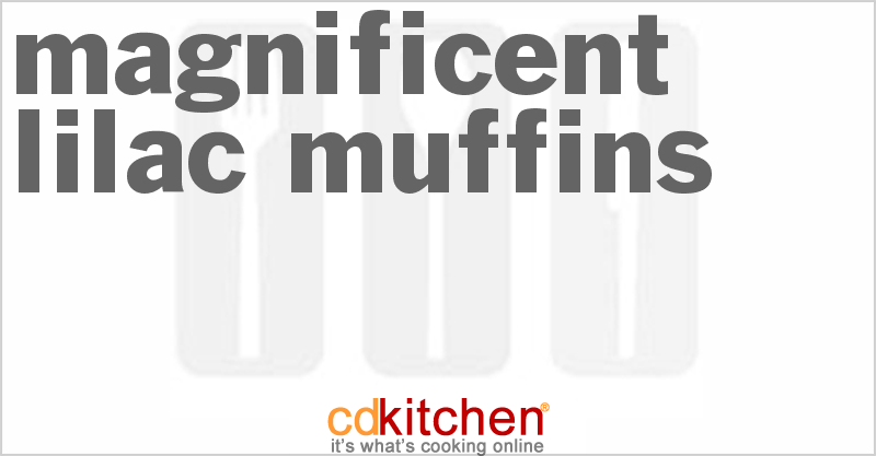 Pour excess water off lilacs. Stir into batter. Pour in prepared muffin tray. Bake at 325 degrees for 30 to 40 minutes.