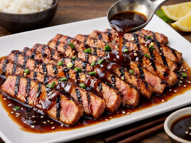 Preheat grill. Drain off excess marinade place in a pan and bring to a boil. Grill tuna 2-4 minutes on each side. Remove to serving platter and pour heated sauce over top.