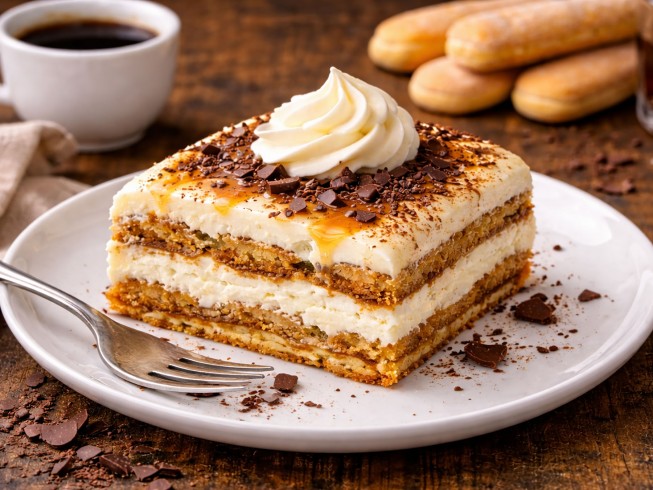 For Tiramisu Assembly: In a mixing bowl, fold 1 cup of the Sabayon-Mascarpone mixture into 1/2 cup of the whipped cream. Spread a small amount of this mixture into the bottom of a 10 x 6 inch baking dish, forming a 1/8 inch deep layer.