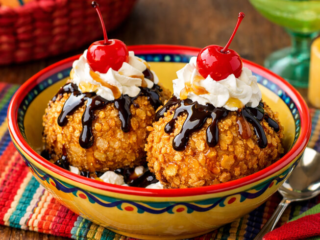 This copycat dessert from El Chico Cafe combines deep-fried ice cream balls coated in a sweet, crunchy mixture. Serve with whipped cream and cherries for an unforgettable treat.
