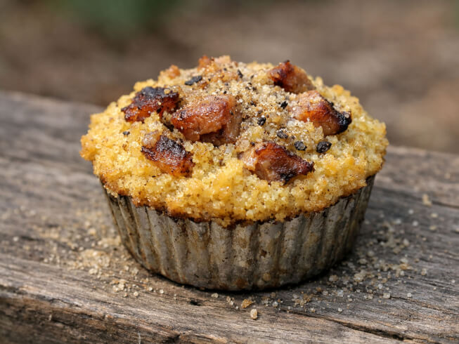Mix all ingredients and pour into greased muffin cups. Bake at 425 degrees F for 20 minutes. Let cool, remove from pan and serve at the ground or on a platform feeder.