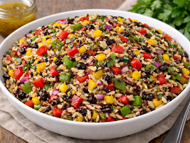 Large Bowl: To mix together the orzo, wild rice, onions, currants, corn, bell peppers, basil, salt, pepper, and parsley to create the base of the salad.